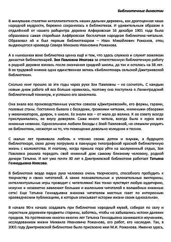 дочери Татьяне. И вот уже почти 30 лет в Дмитриевской библиотеке работает Татьяна