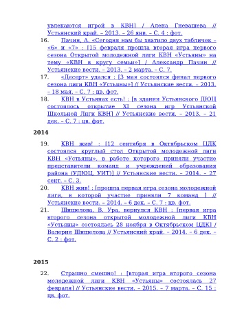 сезона лиги КВН «Устьяны»] // Устьянские вести. – 2013.