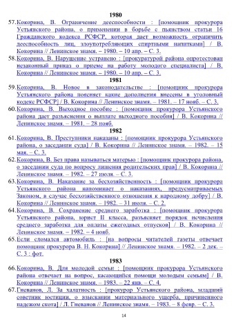 кодекс РСФСР] / В. Кокорина // Ленинское знамя. – 1981. – 17 нояб. – С. 3.
