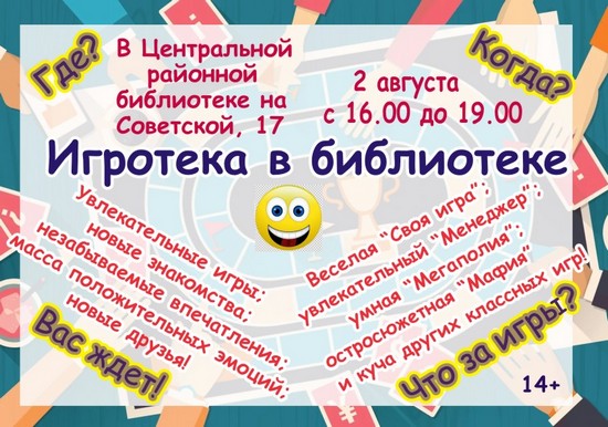 Центральная районная библиотека и отдел спорта, туризма и молодежи администрации Устьянского района 14 июля 2017 с 12:00 до 19.00 приглашают друзей и гостей на