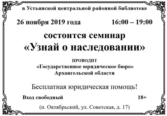 План мероприятий МБУК «Устьянская МЦРБ» на НОЯБРЬ месяц