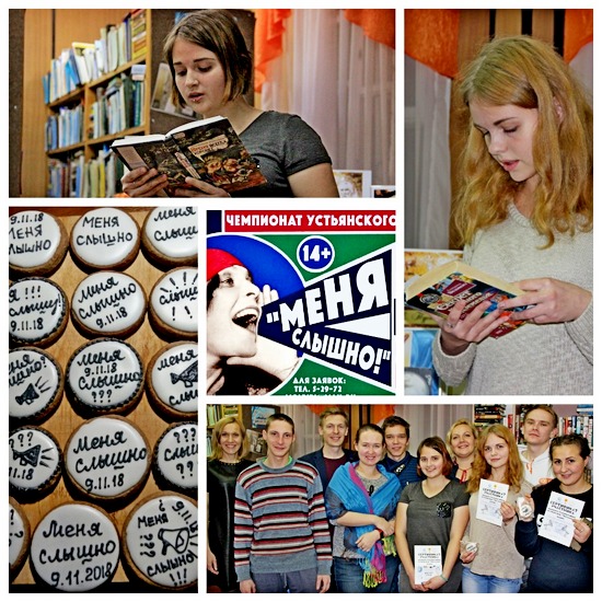 Вечером в пятницу 9 ноября в Центральной районной библиотеке состоялся чемпионат Устьянского района по чтению вслух «Меня слышно!». Инициатором чемпионата выступил Центр молодежных инициатив "ЮВЕНТА" при поддержке областного Дома молодежи.
