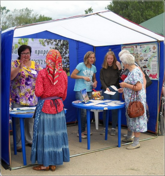 На народном гулянье «Ссыпчина в Шангалах» библиотекари снова провели интерактивные площадки «Уважать природу – традиция русского народа», и «Аз и Буки – экологические науки».