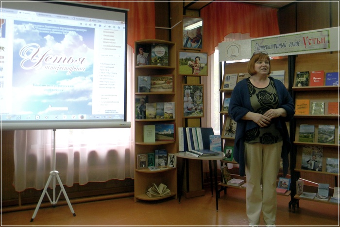 27 мая 2016 года в литературной гостиной Центральной районной библиотеки состоялась презентация биобиблиографического справочника «Устья литературная». На выставке «Литературный голос Устьи» были представлены авторы и их произведения вошедшие в справочник. На презентацию собрались люди, увлеченные литературным творчеством устьяков.