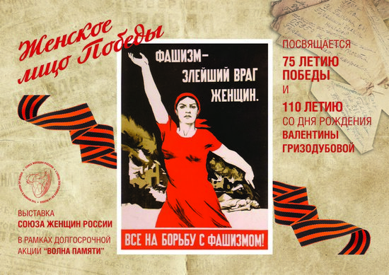 По инициативе Союза женщин России и при поддержке военно-патриотического общества в 2020 году проводится акция «Женское лицо Победы». Акция приурочена к 75-летию Победы в Великой Отечественной войне 1941 – 1945 годов и 110-летию со дня рождения советской летчицы, Героя Советского Союза Валентины Гризодубовой.