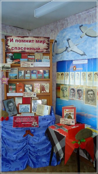 Выставки документов по военной тематике действуют и в других библиотеках. В Районной детской библиотеке оформлена выставка «И юных, на подвиг война позвала», в Грунцовской библиотеке - «И помнит мир спасённый», в Строевской библиотеке - «И помнить страшно, и забыть нельзя», в Киземской библиотеке - «Дети-герои Великой Отечественной».