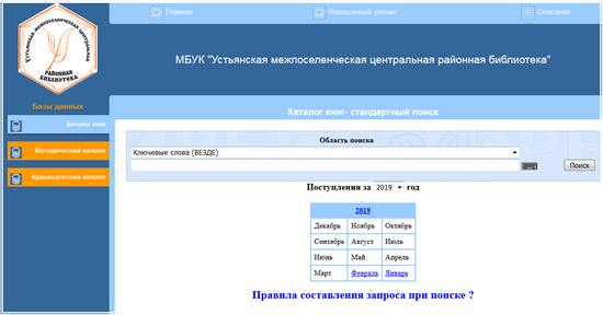 Уважаемые читатели, предлагаем вашему вниманию электронный каталог Муниципального бюджетного учреждения культуры «Устьянская межпоселенческая центральная районная библиотека», размещенный на портале Архангельской областной научной библиотеки им. Н.А. Добролюбова, средствами автоматизированной системы WEB-ИРБИС.