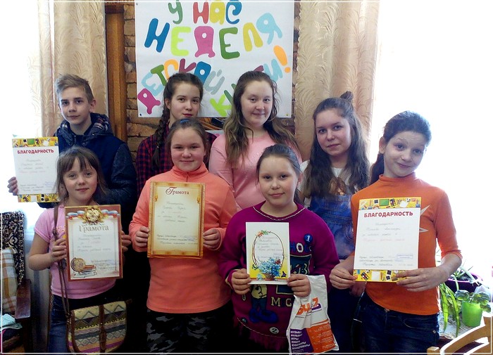 Киземская библиотека посвятила одно из мероприятий недели юбилею Архангельской области. Дети посмотрели видеоролик «Мы живём в России – Поморы» и приняли участие в игре «Путешествие по родному краю». Участники литературного часа «Сказки подружились со стихами» ребята вспомнили сказки, написанные известными детскими писателями в стихотворной форме. Во время библиоквеста "В поисках ответа" команды посетили четыре станции: "Литературная карусель", "Герои и подвиги", "Аптека для души", "Из древности времён", где набирали баллы за правильные ответы. Заключительное мероприятие посвящалось творчеству знаменитого сказочника Г.Х. Андерсена. Успешно прошла акция «Подари книгу библиотеке», читателями подарено 50 книг.