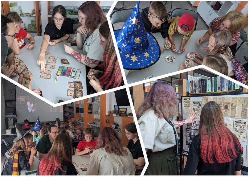 С самого утра в библиотеке показывали марафон фильмов о Гарри Поттере, играли в настольные игры: тематический «Доббль» и разработанную специалистами библиотеки «Мафию по миру Гарри Поттера», а также классическую игру «Зельеварение». Малыши научились складывать из бумаги дракона — любимое магическое животное Хагрида, а взрослые вечером сыграли в квиз по волшебному миру: вспоминали персонажей, фильмы и книги. Победителем стала команда «Ор мандрагор».