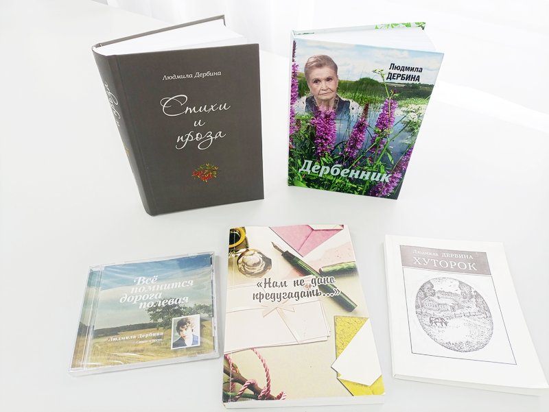 Поэзия Людмилы Александровны знакома устьянским читателям – в библиотеках имеется сборник «Крушина» и сама поэтесса бывала в Устьянах. На прошедшей встрече любители поэзии узнали о книгах Людмилы Александровны: «Хуторок» (2004 г.), «Стозвон» (2006), «Нам не дано предугадать» (2010), «Стихи и проза» (2018). Главное место в разговоре на мероприятии занимала новая книга – «Дербенник», изданная осенью 2024 года. С ней собравшихся познакомили две гостьи из Вельска: Галина Александровна Гладкова, руководитель литературной гостиной при вельском районном Совете ветеранов и Нефедова Любовь Александровна, поэт и подруга Людмилы Александровны Дербиной.