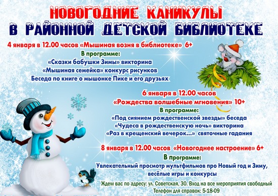 Зима – это чудесные новогодние праздники, каникулы для детей и взрослых, когда можно интересно и с пользой провести время в Районной детской библиотеке.