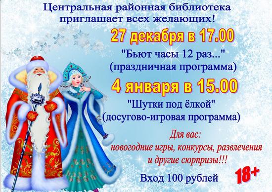 План мероприятий МБУК «Устьянская МЦРБ» на ЯНВАРЬ месяц