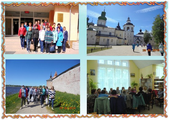 29 мая делегация библиотекарей Устьянского района побывала в гостях у вологодских коллег в г. Кириллове. Программа поездки включала в себя посещение Кирилловской центральной библиотеки и Кирилло-Белозерского монастыря.