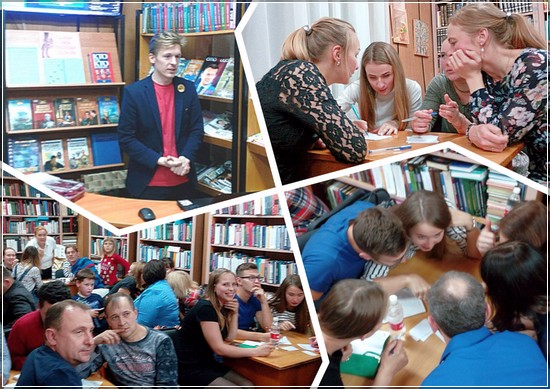 Иевлева С. П. ведущий библиотекарь рассказала о правах и обязанностях граждан нашей страны, закрепленных в Конституции. Затем присутствующие организовали две семейные команды. Семья Кузнецовых назвала свою команду «Правозащитники», а семья Поповых – «Законодатели».