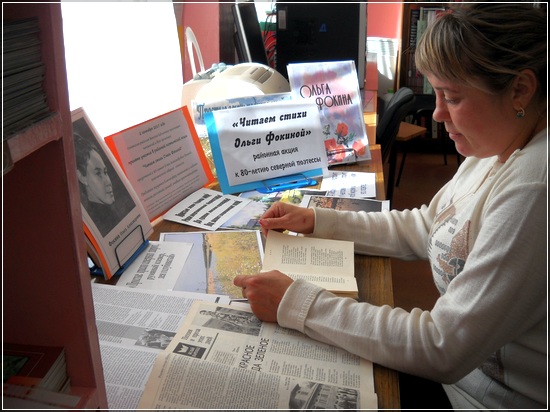 В начале сентября в библиотеках Устьянского района прошла литературная акция, приуроченная к 80-летию со дня рождения замечательной северной поэтессы Ольги Фокиной и направленная на популяризацию ее поэтического творчества. Ольга Фокина – автор нескольких десятков сборников и её стихи – это краски родного Северного края, его напевы и голоса, дыхание и биение сердца.